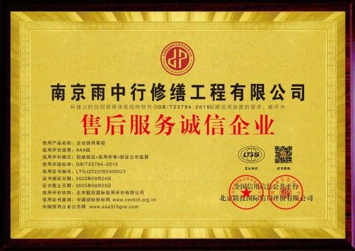 滁州雨中行修缮公司凭借完善的服务体系、优质的工程品质及良好的客户口碑,成功获评“滁州售后服务诚信企业”称号。自2013年成立以来,公司始终坚持“不分包、不挂靠、